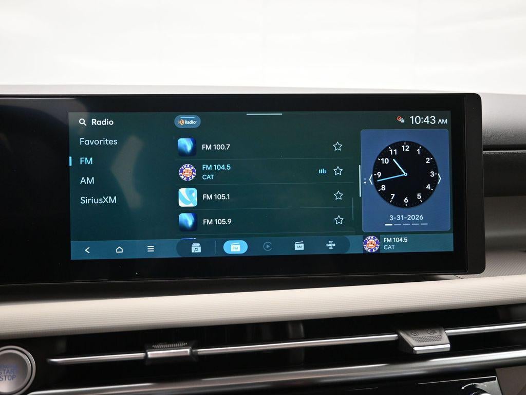 - Radio: AM/FM/HD Audio System -inc: 12.3" color touchscreen display, 6 speakers, SiriusXM satellite radio system (3-month trial subscription), wireless Apple CarPlay and Android Auto integration, controller OTA update capability, Blue Link connected car system and USB connectivity