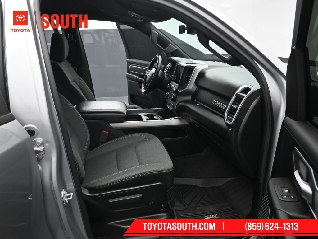 The exterior of this truck is dressed in a sleek Silver finish, complemented by premium features like LED fog lamps, LED taillamps, and a body-color front and rear bumper. The 20-inch polished wheels and black exterior accents give this Big Horn/Lone Star a bold and distinctive look.