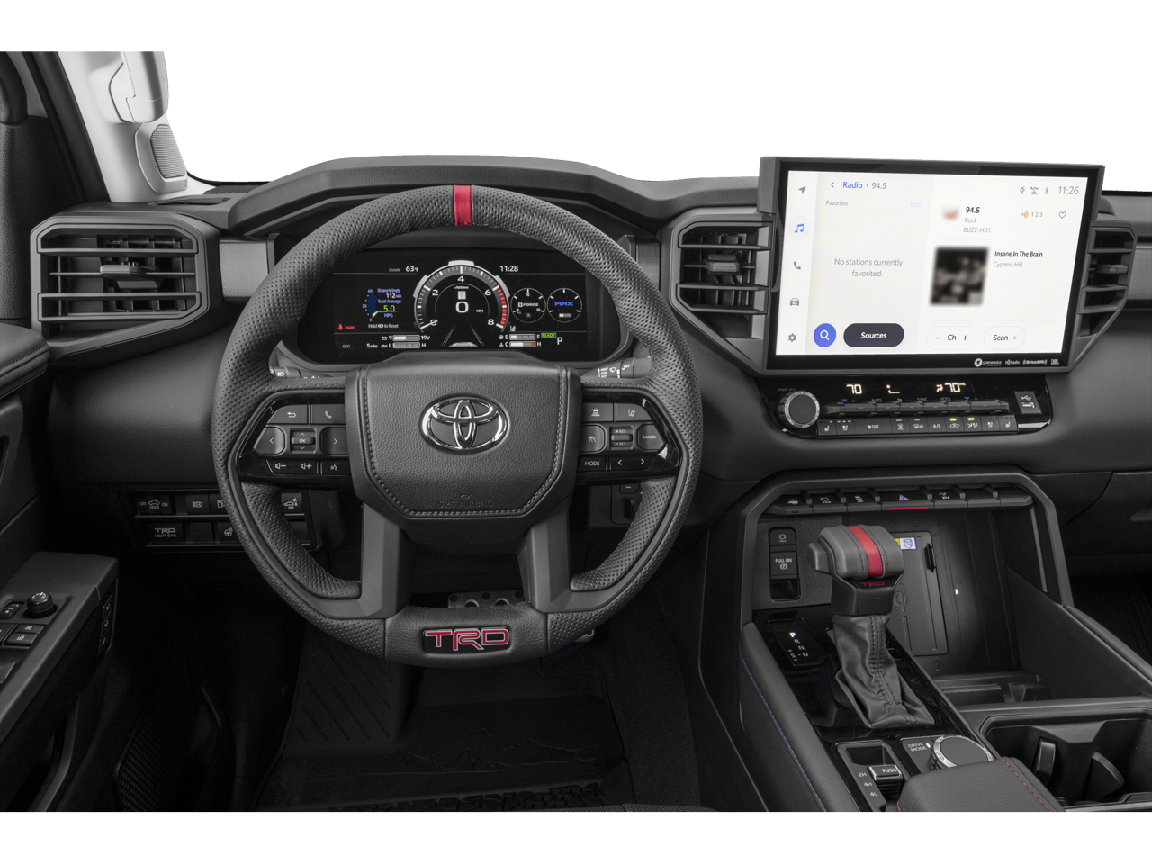 3.4L V6, 12 Speakers, 3.31 Axle Ratio, 4-Wheel Disc Brakes, 400W/120V AC Rear Seat & Bed Power Supply, ABS brakes, Air Conditioning, Alloy wheels, AM/FM radio: SiriusXM, Apple CarPlay/Android Auto, Auto High-beam Headlights, Auto-dimming door mirrors, Auto-dimming Rear-View mirror, Automatic temperature control, Black Dual Exhaust Tips w/Debossed TRD Pro Logo, Brake assist, Bumpers: body-color, Delay-off headlights, Driver door bin, Driver vanity mirror, Dual front impact airbags, Dual front side impact airbags, Electronic Stability Control, Emergency communication system: Safety Connect (10-year trial), Front & Rear Mud Guards, Front anti-roll bar, Front Bucket Seats, Front Center Armrest, Front dual zone A/C, Front fog lights, Front reading lights, Front wheel independent suspension, Fully automatic headlights, Garage door transmitter: HomeLink, Heated & Ventilated Front Bucket Seats, Heated Color-Keyed Outside Mirrors, Heated door mirrors, Heated front seats, Heated steering wheel, Illuminated entry, Knee airbag, Leather Shift Knob, LED Lightbar w/Fog & Marker Lights, Low tire pressure warning, Memory seat, Multi-Terrain Back Monitor, Navigation System, Occupant sensing airbag, Outside temperature display, Overhead airbag, Overhead console, Panic alarm, Passenger door bin, Passenger vanity mirror, Power door mirrors, Power driver seat, Power moonroof, Power Panoramic Roof, Power passenger seat, Power steering, Power windows, Qi-Compatible Wireless Smartphone Charger, Radio data system, Radio: Premium Audio w/JBL, Rear reading lights, Rear seat center armrest, Rear step bumper, Rear window defroster, Remote keyless entry, Security system, Smoked-Finish Premium LED Headlights & DRL, SofTex Seat Trim, Speed control, Speed-sensing steering, Split folding rear seat, Sport steering wheel, Steering wheel mounted audio controls, Tachometer, Telescoping steering wheel, Tilt steering wheel, Towing Technology Package, Traction control, TRD Pro Heated Leather-Trimmed Steering Wheel, Trip computer, Turn signal indicator mirrors, Variably intermittent wipers, Ventilated front seats, Voltmeter, Wheels: 18 x 8 Black BBS Forged Aluminum, 3.4L V6.