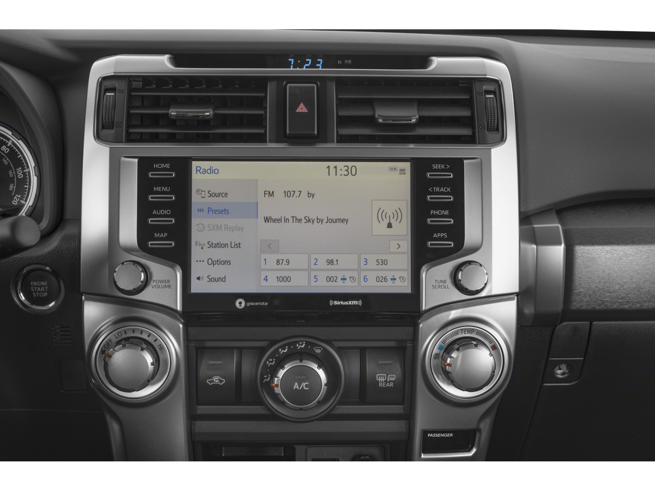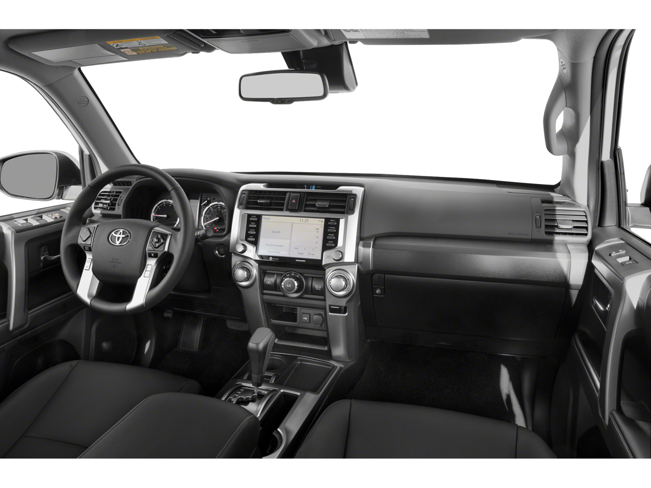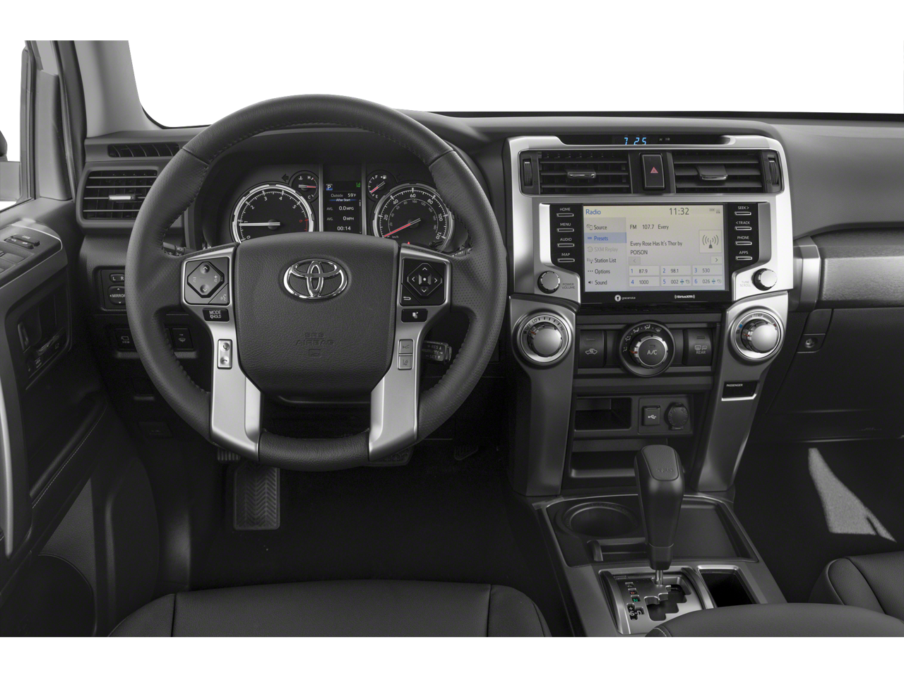 The interior of the 4Runner TRD Sport is a harmonious blend of style and functionality. Slip into the supportive SofTex-trimmed seats and enjoy the added comfort of a power driver's seat. Stay connected with the Premium Audio system, featuring an 8-inch touch screen, Android Auto, Apple CarPlay, and Amazon Alexa compatibility. The Panoramic Back Monitor and Garage Door Opener further enhance your driving experience, making every journey more convenient and secure.