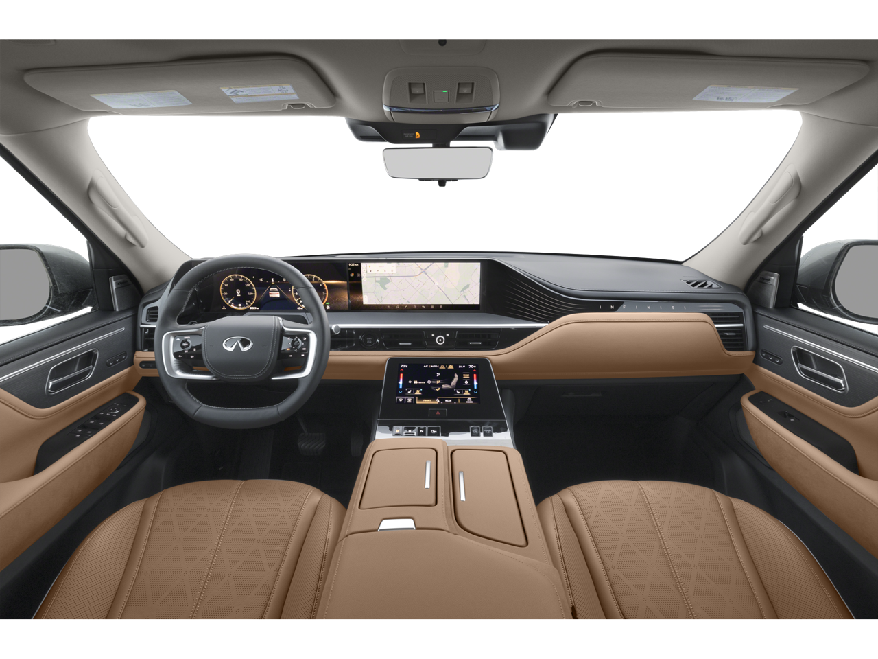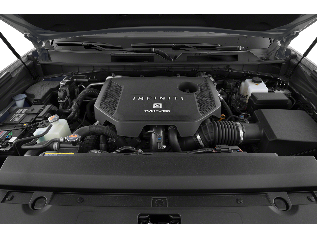 3rd row seats: bench, 4-Wheel Disc Brakes, ABS brakes, Adaptive suspension, Air Conditioning, Alloy wheels, AM/FM radio: SiriusXM with 360L, Anti-whiplash front head restraints, Apple CarPlay/Android Auto, Audio memory, Auto High-beam Headlights, Auto tilt-away steering wheel, Auto-dimming door mirrors, Auto-dimming Rear-View mirror, Auto-leveling suspension, Automatic temperature control, Brake assist, Bumpers: body-color, Center Front Spoiler, Climate Controlled Front Bucket Seats w/Massage, Compass, Delay-off headlights, Driver door bin, Driver vanity mirror, Dual front impact airbags, Dual front side impact airbags, Electronic Stability Control, Emergency communication system: INFINITI InTouch, Four wheel independent suspension, Front anti-roll bar, Front Bucket Seats, Front Center Armrest, Front dual zone A/C, Front reading lights, Fully automatic headlights, Garage door transmitter: myQ Connected Garage, Genuine wood dashboard insert, Genuine wood door panel insert, Heads-Up Display, Heated door mirrors, Heated front seats, Heated rear seats, Heated steering wheel, HVAC memory, Illuminated entry, Knee airbag, Leather steering wheel, Literature Kit, Low tire pressure warning, Memory seat, Navigation system: Google Built-in, Occupant sensing airbag, Outside temperature display, Overhead airbag, Overhead console, Panic alarm, Passenger door bin, Passenger vanity mirror, Power door mirrors, Power driver seat, Power Liftgate, Power moonroof, Power passenger seat, Power steering, Power windows, Premium Paint, Radio data system, Radio: Klipsch Reference Premiere Audio System, Rain sensing wipers, Rear air conditioning, Rear anti-roll bar, Rear reading lights, Rear seat center armrest, Rear window defroster, Rear window wiper, Reclining 3rd row seat, Remote keyless entry, Security system, Semi-Aniline Premium Leather Seating Surfaces, Speed control, Speed-sensing steering, Split folding rear seat, Spoiler, Steering wheel memory, Steering wheel mounted audio controls, Tachometer, Telescoping steering wheel, Tilt steering wheel, Traction control, Trip computer, Turn signal indicator mirrors, Variably intermittent wipers, Ventilated front seats, Ventilated rear seats, Wheels: 22 x 8 Cast Aluminum Alloy.